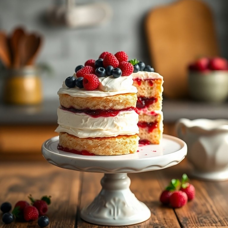 Pastel de Tres Biscochos de Vainilla con Relleno de Frutos Rojos
