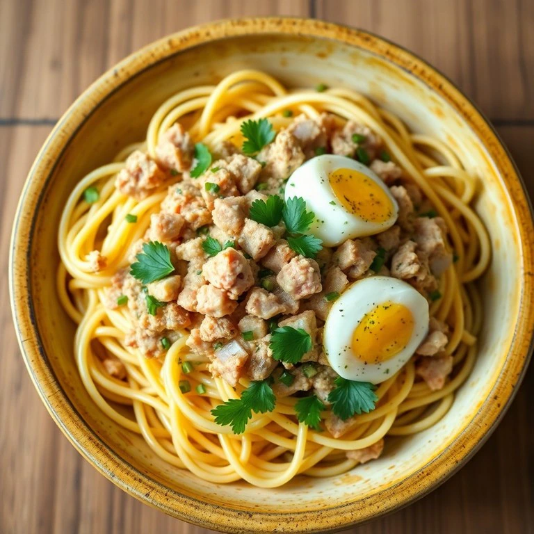 Una receta rápida y sabrosa que combina la pasta con atún, cebolla y un toque de huevo, perfecta para una comida ligera y nutritiva.