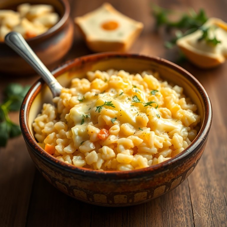 Un plato reconfortante de arroz cremoso con un toque de queso, ideal para disfrutar en familia o en una cena especial. Su textura suave y su sabor delicioso lo convierten en una opción perfecta para cualquier ocasión.
