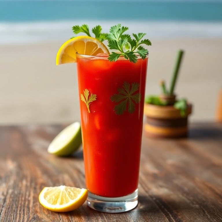 Una refrescante mezcla de tomate y almejas que captura el sabor del mar, perfecta para disfrutar en cualquier ocasión, ya sea como bebida o base para cócteles.