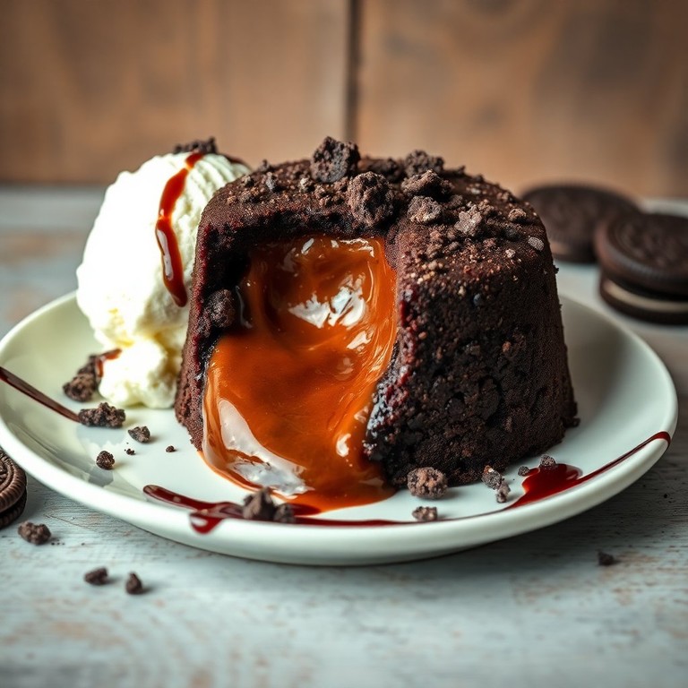 Indulge in a rich, gooey chocolate cake with a surprise Oreo center. This Chocolate Oreo Lava Cake is perfect for chocolate lovers, featuring a molten chocolate center that flows out when you cut into it, complemented by the crunch of Oreo cookies.