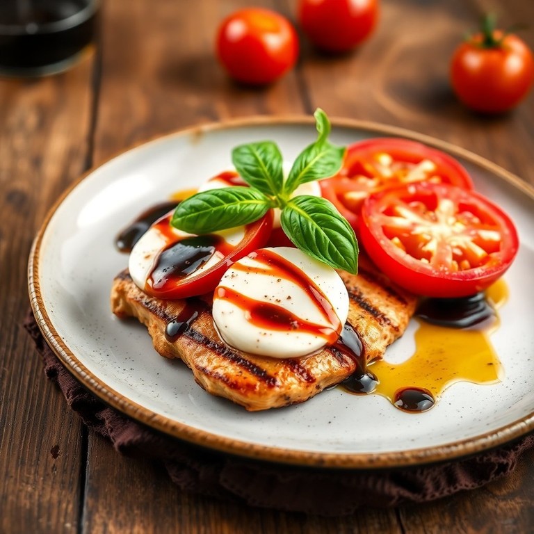 Deliciosas pechugas de pollo a la parrilla, combinadas con la frescura de la mozzarella y el aroma de la albahaca, perfectas para una comida ligera y sabrosa.