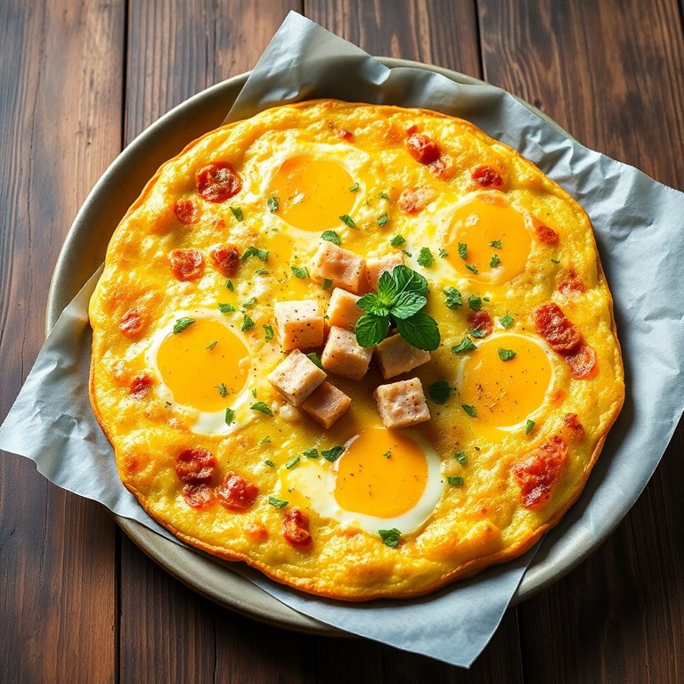 Una sabrosa tortilla española con papas, huevo y un toque de atún, perfecta para cualquier comida del día.