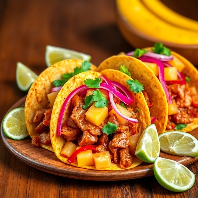 Estos tacos de pollo al pastor son una deliciosa combinación de pollo marinado en achiote y jugo de piña, cocinado a la parrilla y servido en tortillas de maíz con piña fresca y cebolla. Perfectos para un almuerzo o cena.
