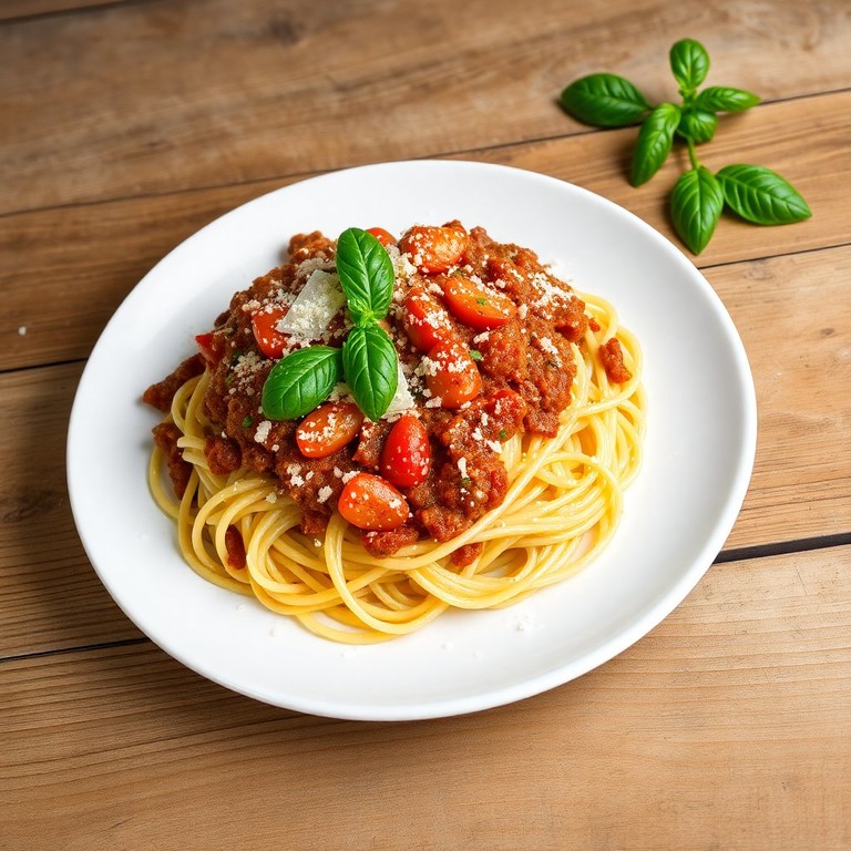 Een hartige bolognesesaus vol met sappig gehakt en seizoensgebonden groenten, perfect voor een gezellige maaltijd.