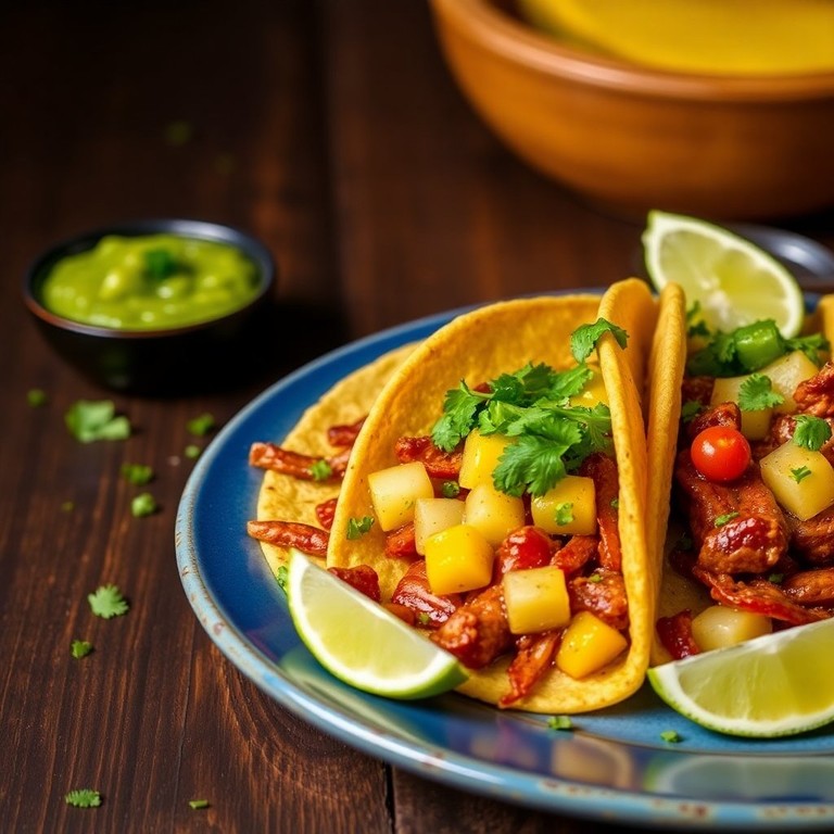 Estos Tacos al Pastor con Piña y Salsa Verde son una explosión de sabores frescos y auténticos. La combinación de carne de cerdo marinada, piña caramelizada y salsa verde crea un platillo irresistible que te transportará a las calles de México.