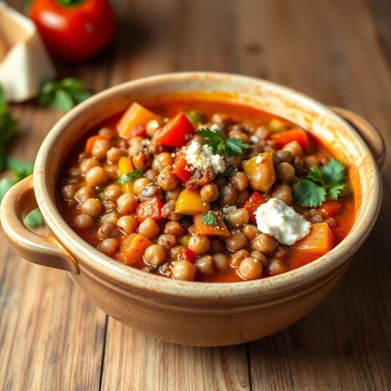 Un guiso nutritivo y reconfortante que combina lentejas y garbanzos con una mezcla de especias y un delicioso tuco, ideal para disfrutar en cualquier ocasión.