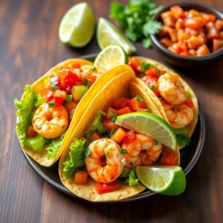 Tacos de Camarones con Salsa de Tomate y Lechuga Fresca