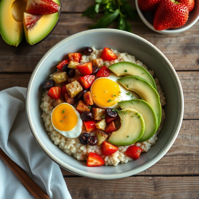Una opción reconfortante de avena con un toque salado de huevos y verduras, perfecta para un desayuno nutritivo y delicioso.