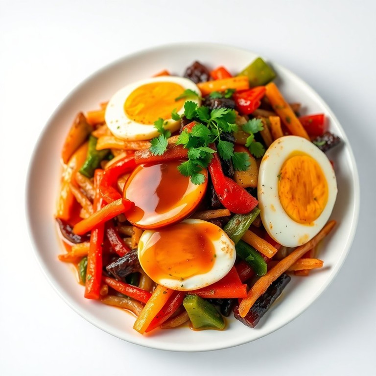 Salteado Vibrante de Verduras con Huevo y Salsa de Soja