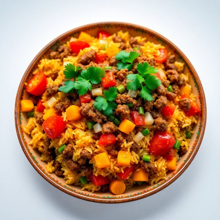 Arroz a la Mexicana con Carne Molida y Cebolla