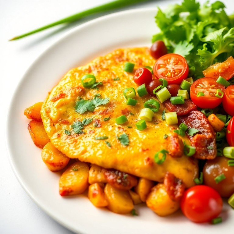 Una deliciosa mezcla de huevos, patatas y pollo, con un toque crujiente de tocino. Perfecta para cualquier comida del día.
