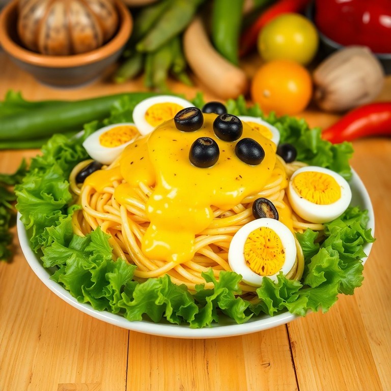Deliciosos fideos bañados en una salsa cremosa de queso y ají amarillo, perfectos para disfrutar en cualquier ocasión.