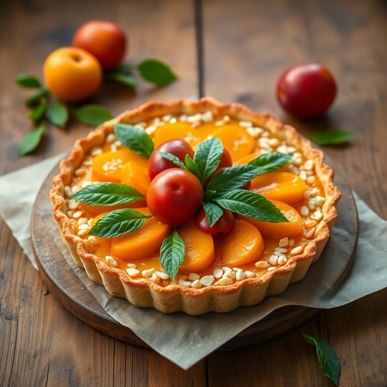 Una deliciosa tarta con un relleno jugoso de nísperos y una base crujiente de almendra, perfecta para disfrutar en cualquier ocasión.