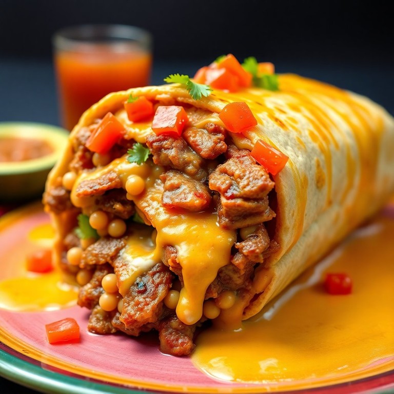 Este Burrito Gigante de Carne Asada con Queso Fundido es una explosión de sabores y texturas. La carne asada jugosa se combina con quesos derretidos, lechuga crujiente y salsas frescas, todo envuelto en una tortilla suave y caliente. Perfecto para compartir o disfrutar en una comida abundante.