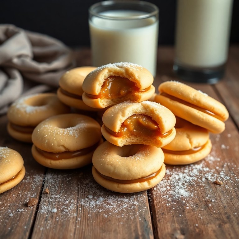 Estas galletas crujientes son perfectas para disfrutar con un café o té. El arequipe en el centro les da un toque dulce y cremoso que contrasta maravillosamente con la textura crujiente de la galleta. ¡Son ideales para compartir en cualquier ocasión!