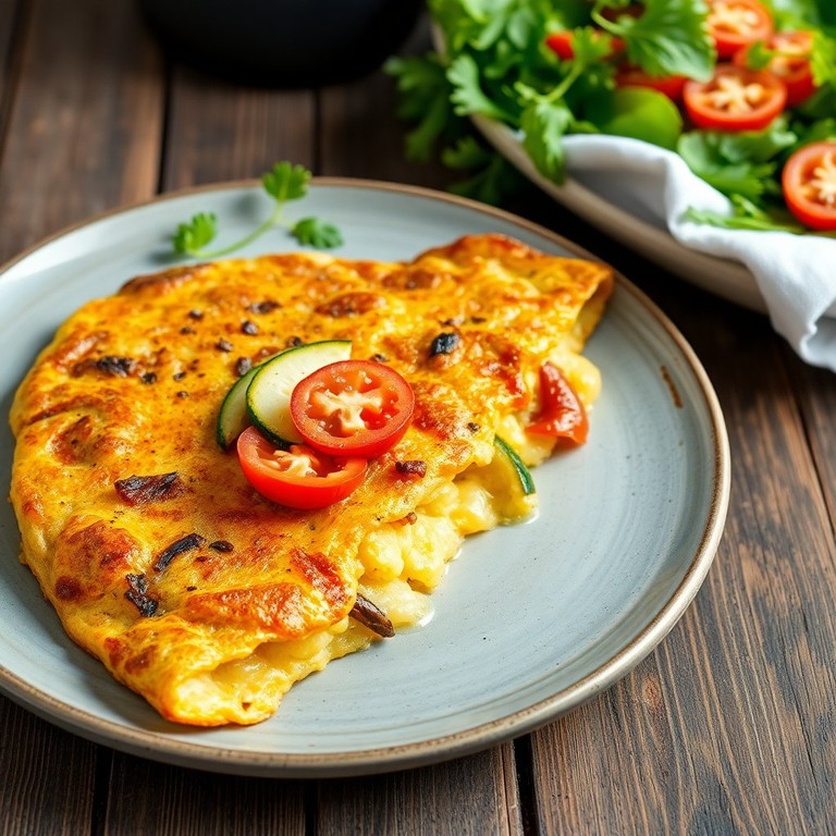 Esta tortilla de papas y cebolla es un clásico español que incorpora un toque fresco de tomate y calabacín, perfecta para cualquier ocasión.