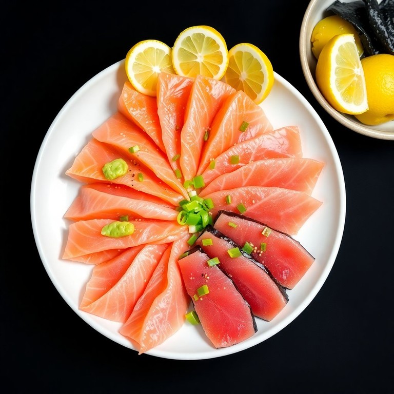 Una delicia de pescado crudo con un toque picante y salado, ideal para los amantes de la cocina japonesa.