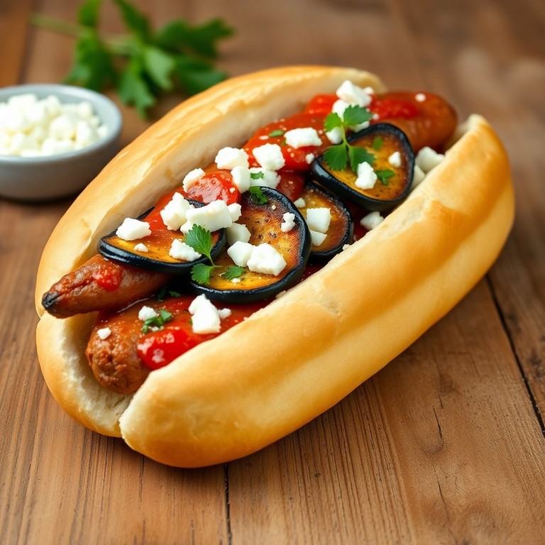 Un clásico reinventado que combina la intensidad de la salchicha picante con la suavidad de la berenjena a la parmesana y la frescura de la salsa de tomate casera, todo en un delicioso pan de hot dog.