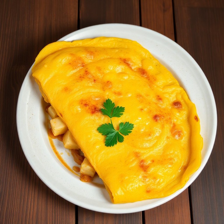Uma omelete deliciosa e recheada com batatas e um toque de farinha, perfeita para um café da manhã ou lanche.