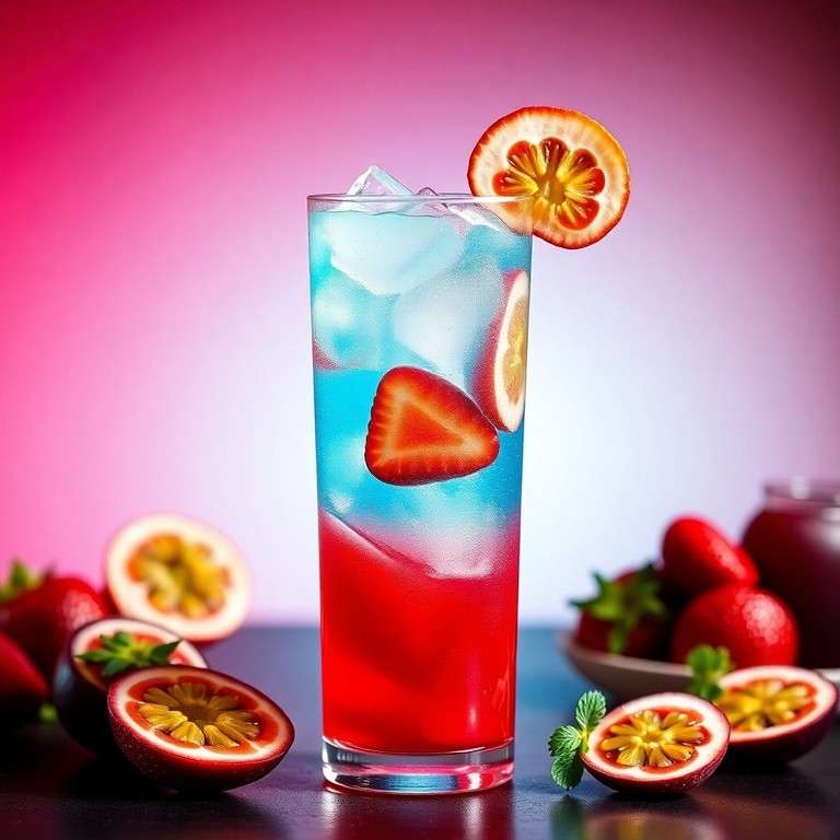 Un cóctel refrescante y afrutado que combina la dulzura de las fresas con el sabor exótico del maracuyá, ideal para disfrutar en cualquier ocasión.