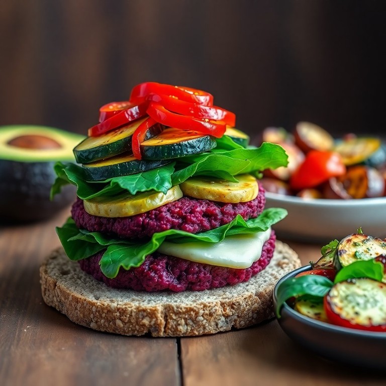 Hamburguesa de Beterraga al Horno con Pan Integral y Verduras Asadas