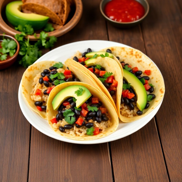 Tacos de Frijoles y Arroz con Tortilla de Maíz