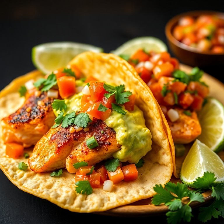 Tacos de Salmón con Guacamole y Pico de Gallo