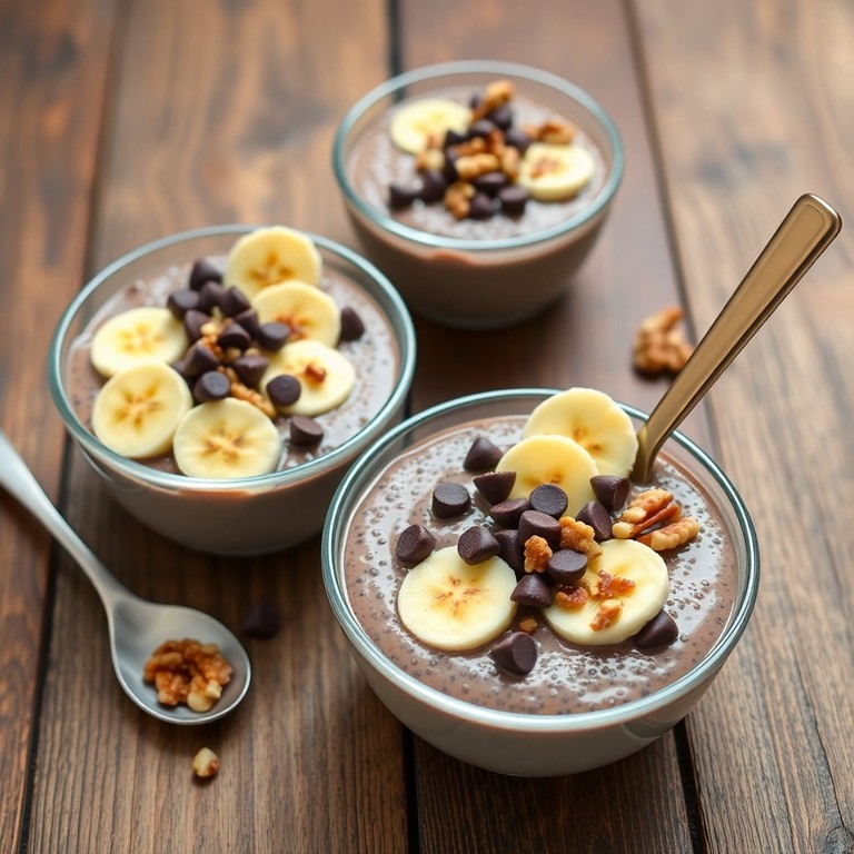 Un postre saludable y delicioso que combina chía, cacao, plátano, chips de chocolate y nueces, ideal para disfrutar en cualquier momento del día.