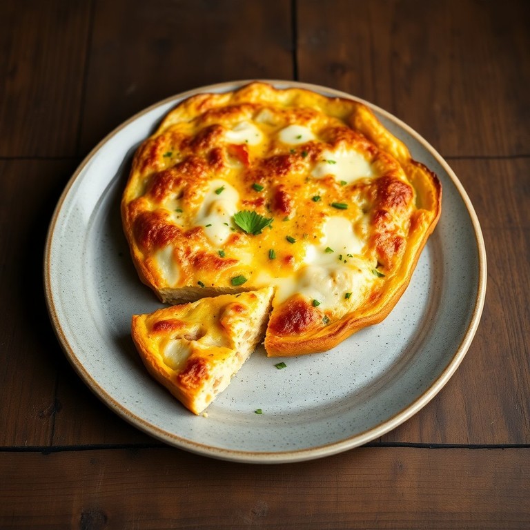 Una deliciosa tortilla española que combina la suavidad de los huevos con el sabor del pollo y el queso fundido, perfecta para cualquier comida del día.