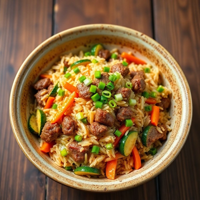 Arroz Salteado con Carne, Zucchini y Zanahoria