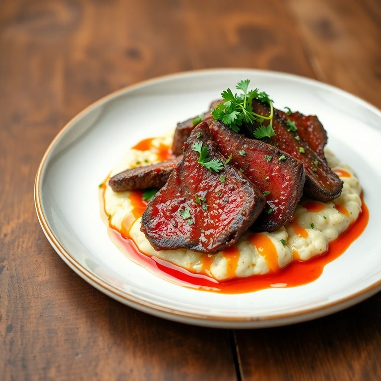 Un plato reconfortante que combina carne tierna con un puré cremoso y un toque picante.