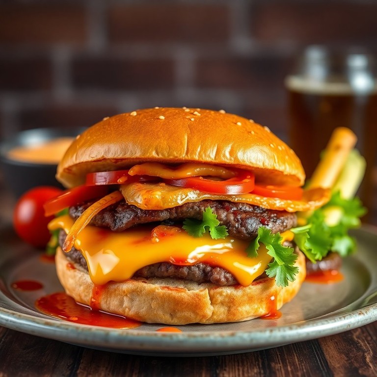 Esta hamburguesa BBQ con salsa de miel picante combina el sabor ahumado de la carne con un toque dulce y picante que hará vibrar tu paladar. Perfecta para una barbacoa o una cena especial.
