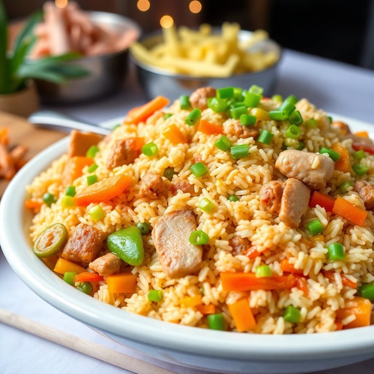 Este Arroz Chino Venezolano Clásico es un festín de sabores que combina pollo, cerdo y una variedad de verduras frescas, ideal para grandes reuniones y celebraciones. Su preparación es sencilla y el resultado es un plato delicioso que encantará a todos los comensales.