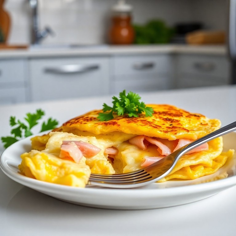 Uma omelete leve e saborosa, perfeita para qualquer refeição, combinando a cremosidade do queijo com o sabor do presunto.