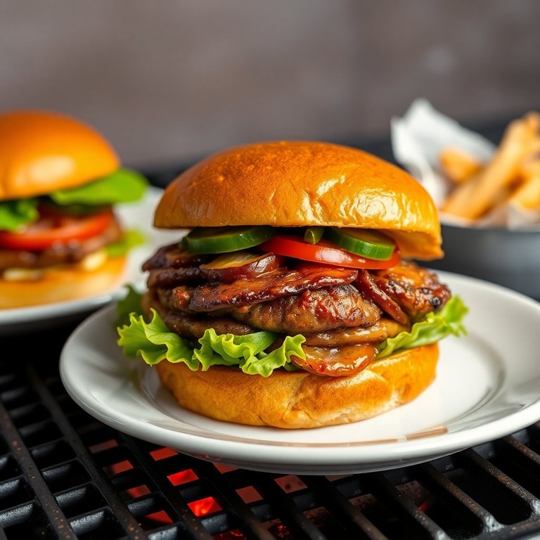 Esta hamburguesa completa al estilo BBQ combina el sabor ahumado de la parrilla con la dulzura de la cebolla caramelizada, creando una experiencia deliciosa para los amantes de la parrilla.
