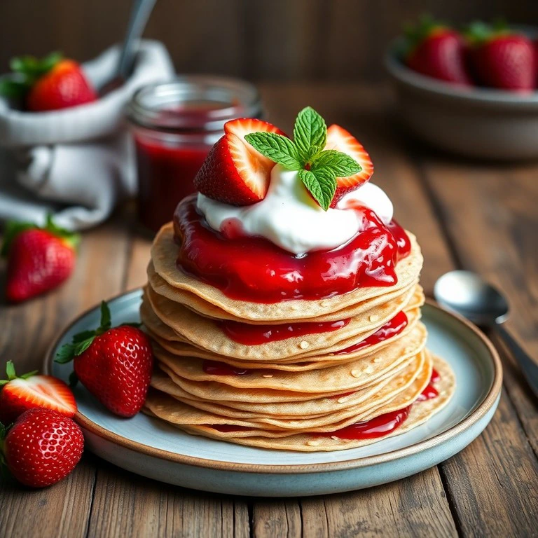 Crepas de Avena con Mermelada de Fresas y Yogurt Griego