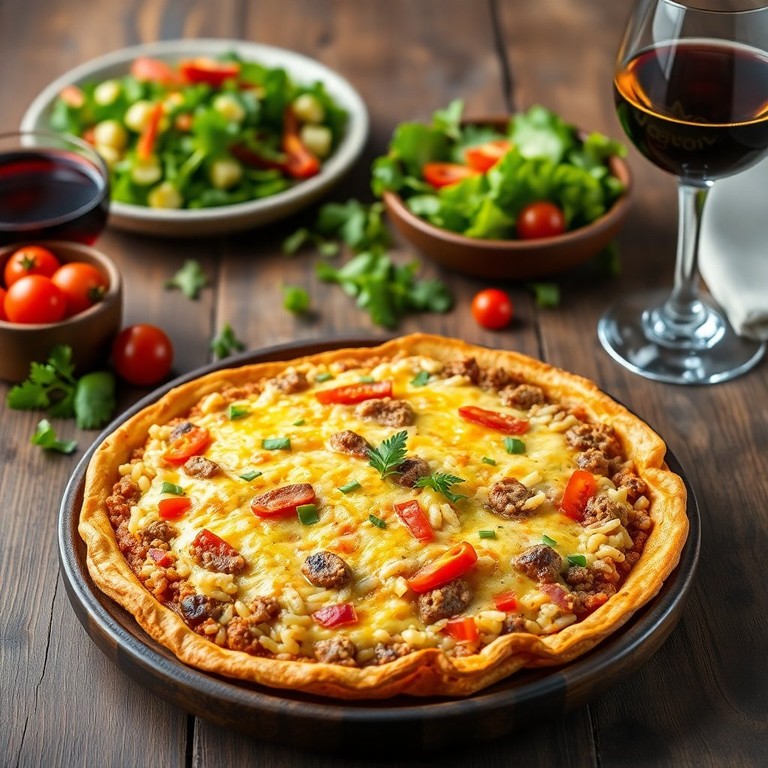 Una opción creativa y sabrosa para cualquier comida, esta tortilla combina la suavidad del arroz con la carne picada y el sabor dulce de la cebolla y el pimiento, perfecta para compartir.