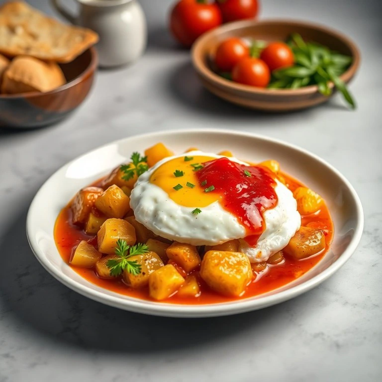 Revuelto Cremoso de Papas y Huevo con Salsa de Tomate