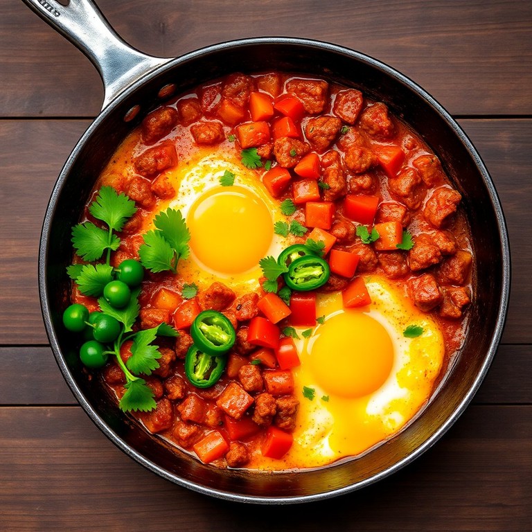 Un desayuno contundente y picante para empezar el día, lleno de sabores intensos y texturas deliciosas. Perfecto para los amantes de la comida mexicana.