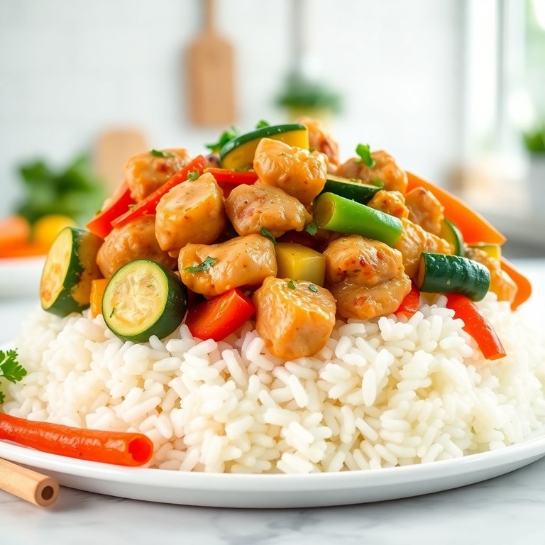 Un salteado rápido y delicioso que mezcla pollo, verduras frescas y arroz, ideal para una comida nutritiva y sabrosa en poco tiempo.