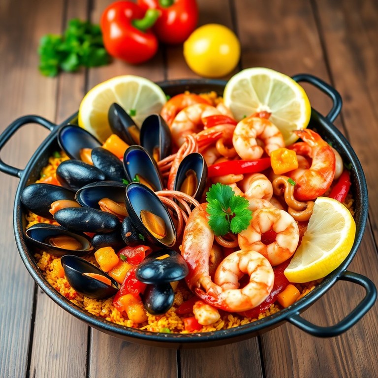 Una deliciosa fusión de mariscos y la receta clásica de paella, perfecta para compartir en una ocasión especial.