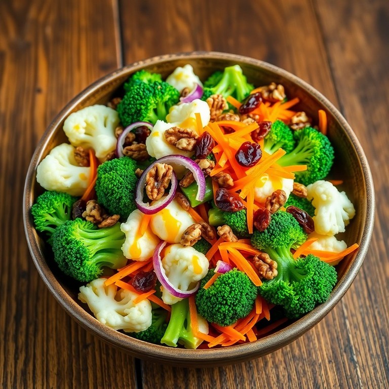 Ensalada Fresca de Brócoli, Zanahoria y Coliflor con Vinagreta de Limón