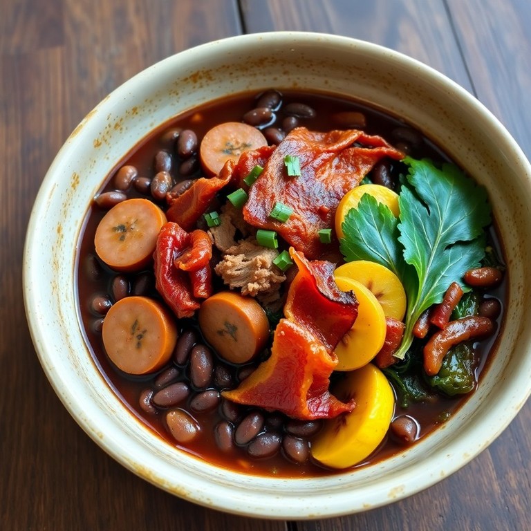 Um prato tradicional brasileiro repleto de sabores e texturas, a Feijoada Completa com Linguiça e Bacon é perfeita para reunir amigos e familiares em uma refeição aconchegante.