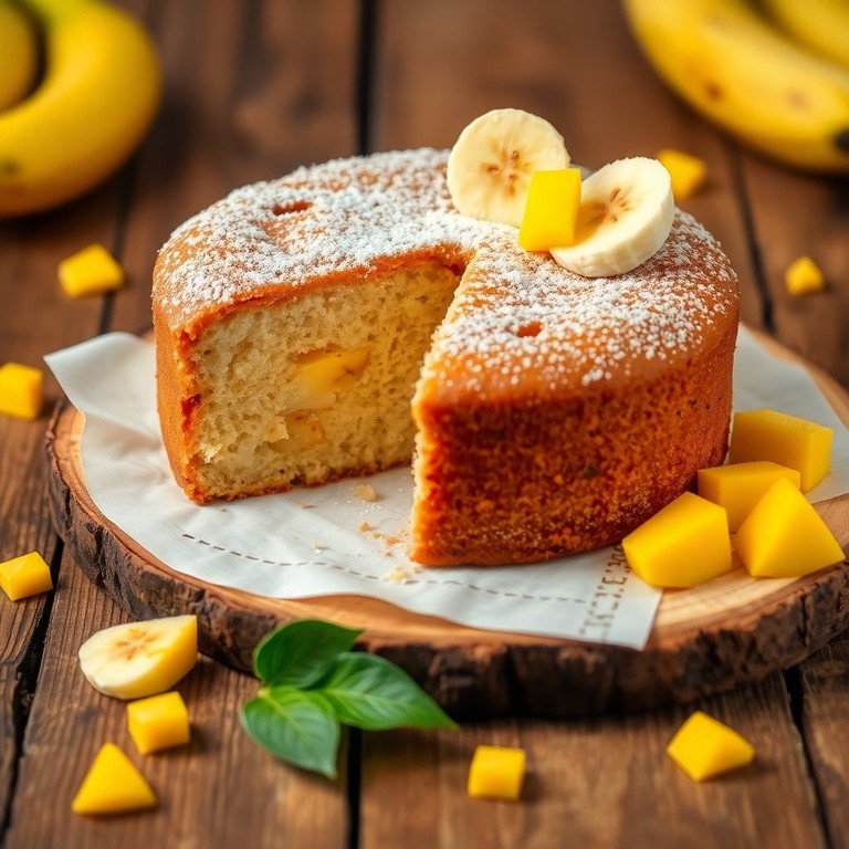Um bolo úmido e saboroso que combina banana e manga para um lanche perfeito.