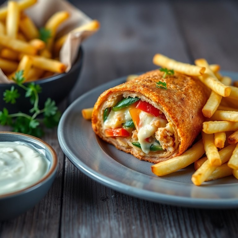 Une variation végétarienne du classique Cordon Bleu, ce plat associe des légumes savoureux à un enrobage croustillant, accompagné de pommes frites dorées et croustillantes. Parfait pour un dîner en famille ou une soirée conviviale.