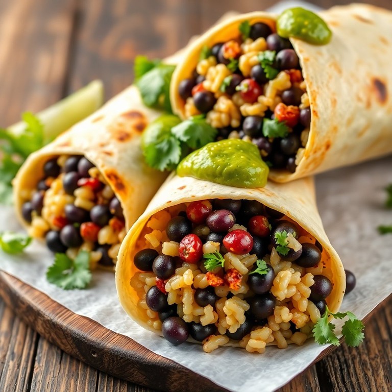Burritos de Frijoles Negros y Arroz con Salsa Verde
