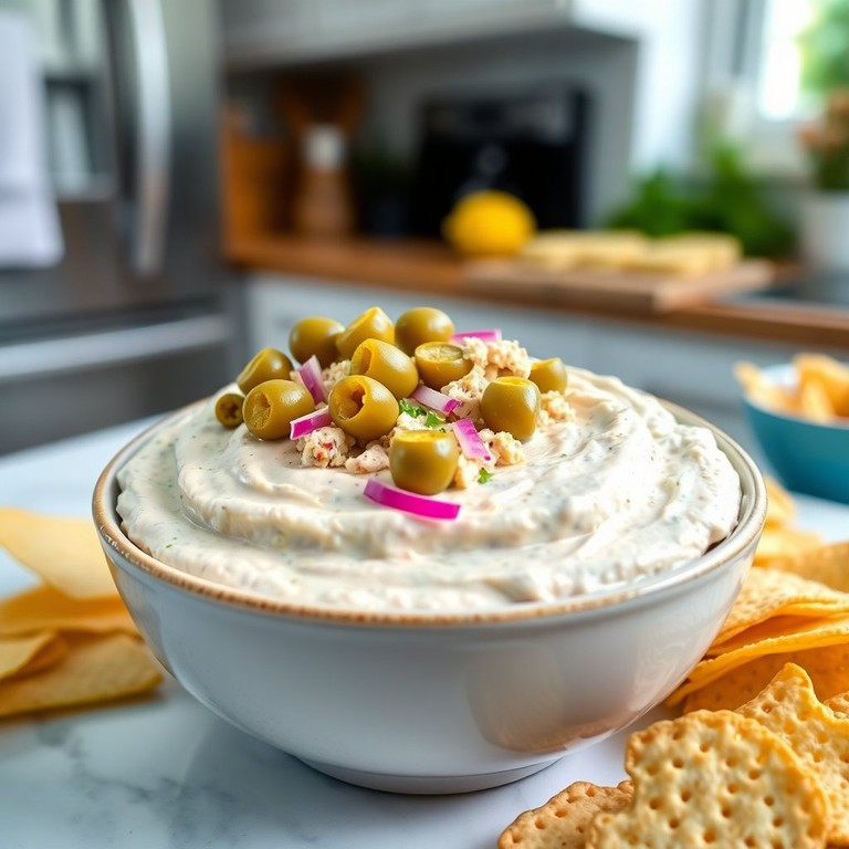 Un dip cremoso y fácil de preparar, ideal para compartir con aceitunas. Perfecto para reuniones y aperitivos.