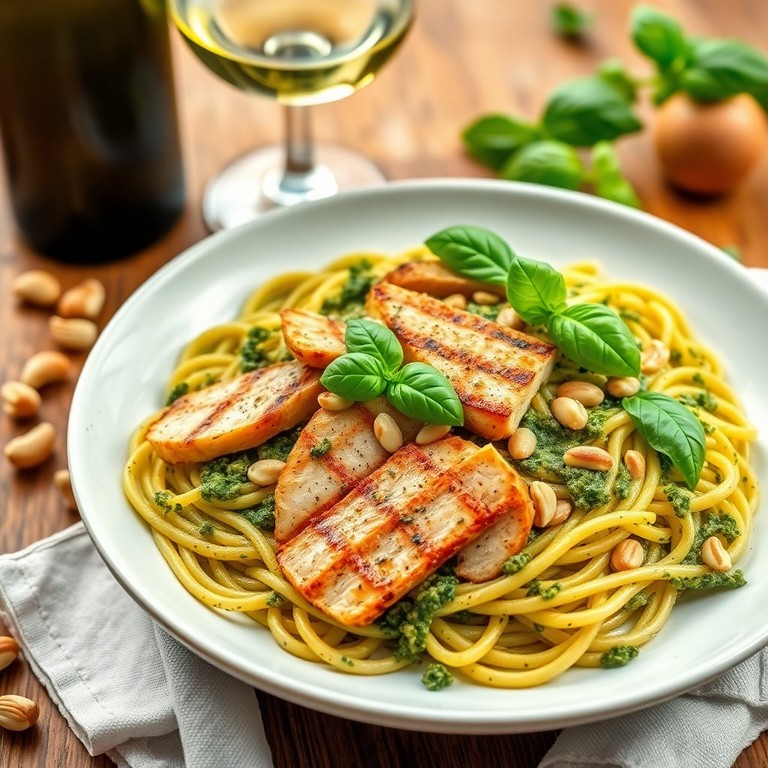 Una deliciosa combinación de pasta, pollo jugoso y un pesto fresco que hará vibrar tus papilas.