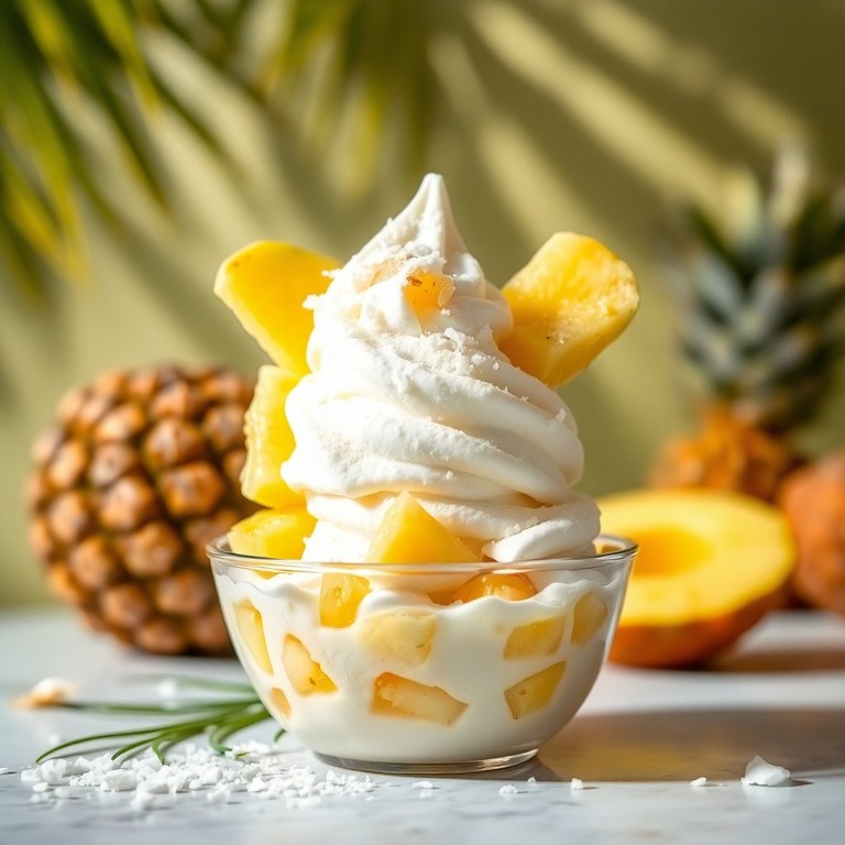 Un refrescante helado de coco con un toque de piña, perfecto para disfrutar en un caluroso día de verano. La combinación de la cremosidad del coco con la frescura de la piña crea un postre delicioso y tropical.